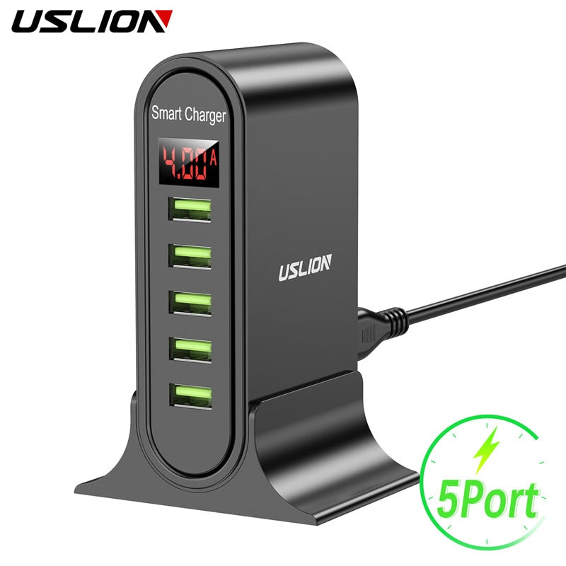 USLION 5 Port USB Charger HUB Multi USB Charging Station Dock Desktop Wall Home LED Display Universal New Chargers EU US UK Plug