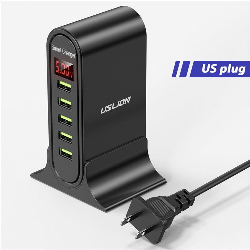USLION 5 Port USB Charger HUB Multi USB Charging Station Dock Desktop Wall Home LED Display Universal New Chargers EU US UK Plug